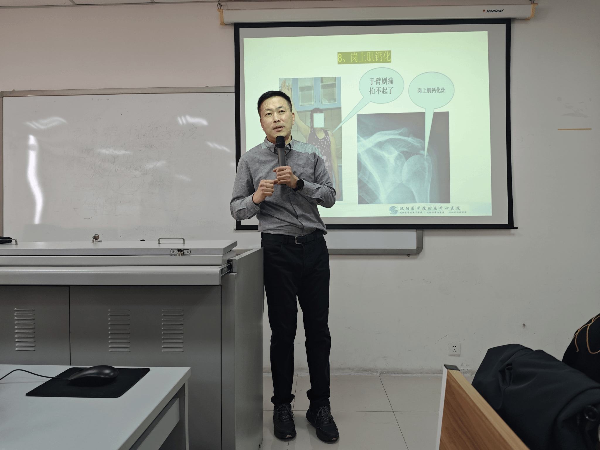 本次讲座主题为“肩关节疼痛健康知识讲座”,旨在提升学院教职工对运动医学领域的认知,促进医学信息工程与临床医学的深度融合。阿良主任从肩关节常见疾病、诊疗技术以及康复治疗等方面进行了深入浅出的讲解,并结合实际案例分享了宝贵的临床经验。讲座最后,阿良主任还与教师们进行了互动交流,耐心解答了大家提出的问题。教师们纷纷表示受益良多。