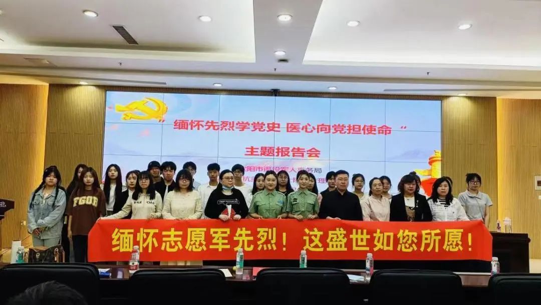 2023年是全面贯彻落实党的二十大精神的开局之年,也是朝鲜停战协定签字、抗美援朝战争胜利七十周年和志愿军英雄凯旋回国65周年。为激励新时代青年铭记伟大历史,砥砺奋进,致敬英雄,5月12日下午,365best体育亚洲官网邀请沈阳市退役军人事务局抗美援朝烈士陵园管理中心宣讲团来院为全体师生开展题为《缅怀先烈学党史‘医’心向党担使命》的主题报告会,365best官网共200名师生参加了此次活动。