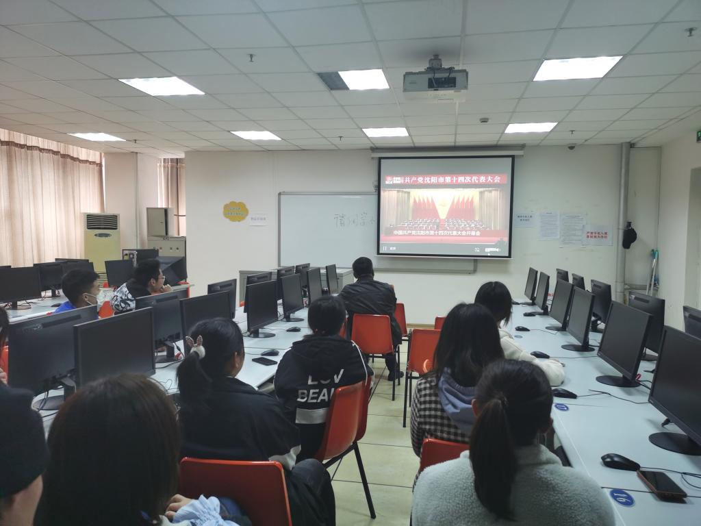 11月4日上午,365best体育亚洲官网党总支部组织全体党员及学生入党积极分子收看“中国共产党沈阳市第十四次代表大会开幕会”实况。