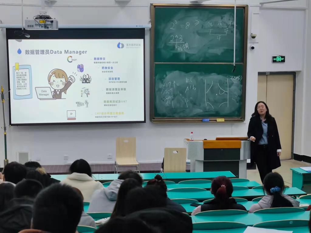 在讲座第一阶段,圣方医药执行总监Maggie女士为大家介绍了CRO行业的国际、国内发展现状,以及目前业内的人才需求状况,为大家拓展了就业的方向。