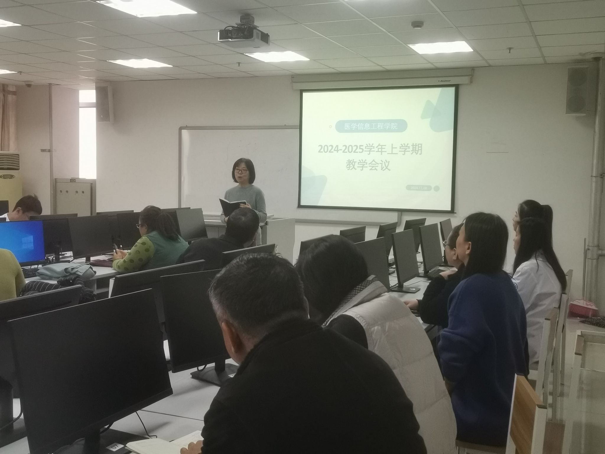 试讲会后,召开了2024-2025学年上学期教学会议。会议旨在总结上半学期教学成果,分析当前教学形势,并规划下半学期教学工作重点。申笑颜副院长强调:一是正确认识期末考试相关工作的重要性,做到提前准备,确保期末考试顺利进行。二是加强教案教法的设计,全面提高教案质量,为提高教学质量奠定了坚实基础。