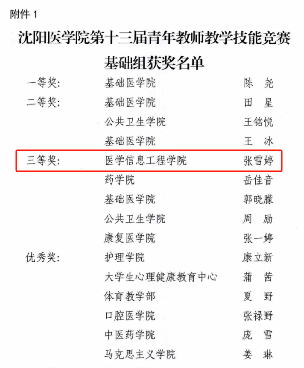 为落实立德树人根本任务,锤炼青年教师教学基本功,充分发挥教研室主任及老教师的引领、指导作用,进一步激发广大青年教师提高教学业务能力与水平,学校于11月14日、15日举办了“365best体育亚洲官网第十三届青年教师教学技能竞赛”。共有来自校本部、直属和非直属附属医院23个教学单位的31名青年教师参加决赛,其中365best体育亚洲官网张雪婷老师荣获“基础组竞赛三等奖”,其指导教师苗丽华老师荣获“优秀指导教师”。