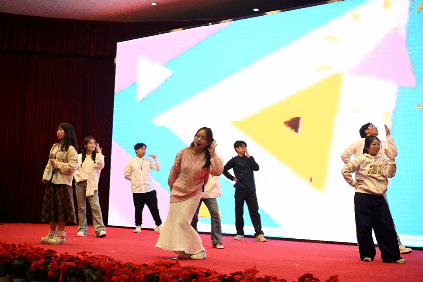 文艺汇演中,同学们用精彩的歌舞、小品等节目,展现了青春的活力与风采,同时也表达了对学校七十五载辉煌历程的敬意和对未来的美好憧憬。现场气氛热烈,掌声不断。