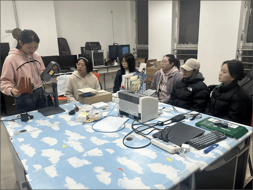 主席团成员熊昱围绕激光雕刻与3D打印两大核心技术,为新成员系统讲解设备操作规范及实践要点,标志着社团"技术赋能计划"正式启动。